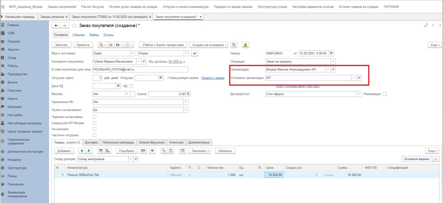 Для внутренних расчетов используются 2 типа спец. заказов: