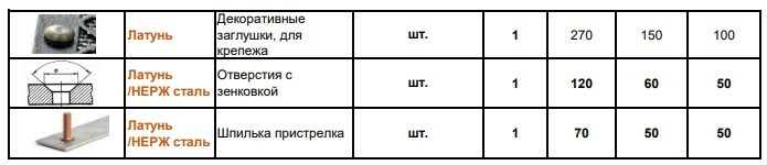 Если клиенту необходимы отверстия или шпильки для крепления, то они рассчитываются по таблице в прайсе.