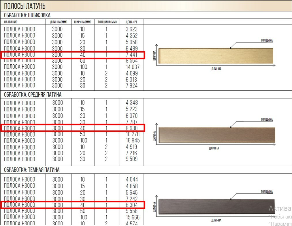 1. Стандартные размеры полос продаются по размерам и цене, указанной в действующем прайсе.