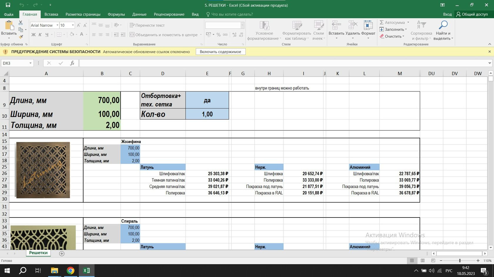 Расчет стоимости изделий происходит с помощью технического прайса калькулятора: